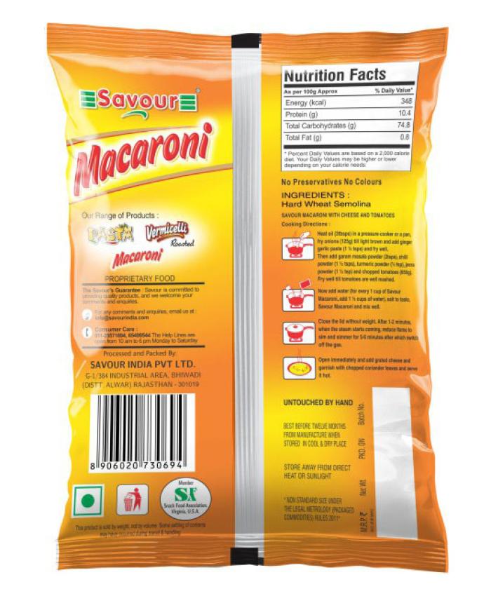 PouchSavour's Macaroni is made from best quality hard wheat semolina and can be enjoy at any time of the day.
